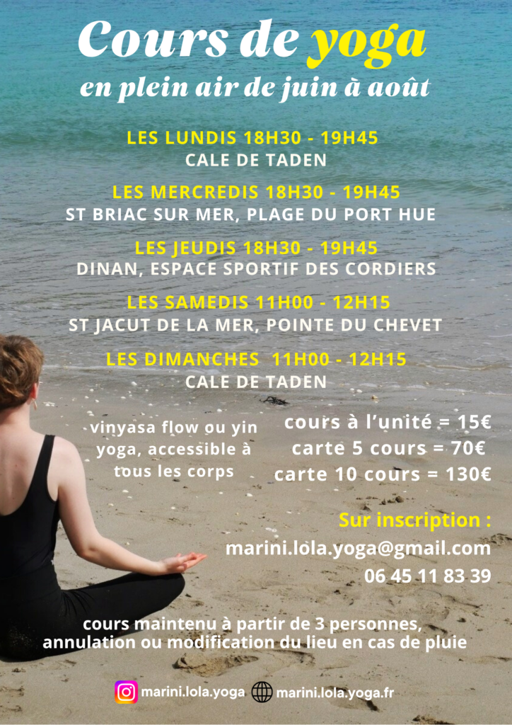 Retrouvez moi les mardis soir de 18h30 à 19h45 à La Maison Juste (27 Le Bourgneuf, 22690 La Vicomté-sur-Rance).